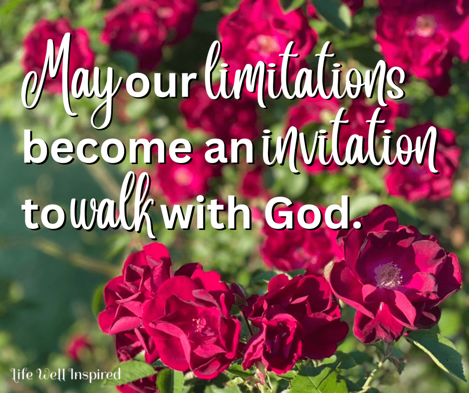 In His sovereignty, God has us where He needs us to reach the world for Him and grow and mature in our faith. We must see our limitations as a sacred invitation to do life with Him, to allow Him to walk with us and guide us.